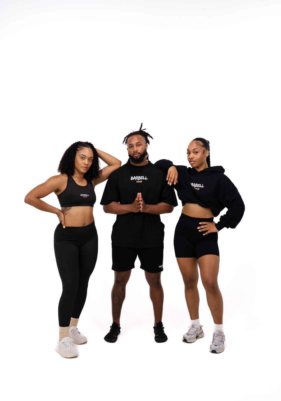 This sleek black two-piece includes a supportive sports bra and high-waisted leggings, both featuring the signature Barbell Baddie logo in brown and white - front and center on the bra and on the back waistband of the leggings. Designed to move with you through every lift, lunge and rep. This set is all about confidence, comfort and power!