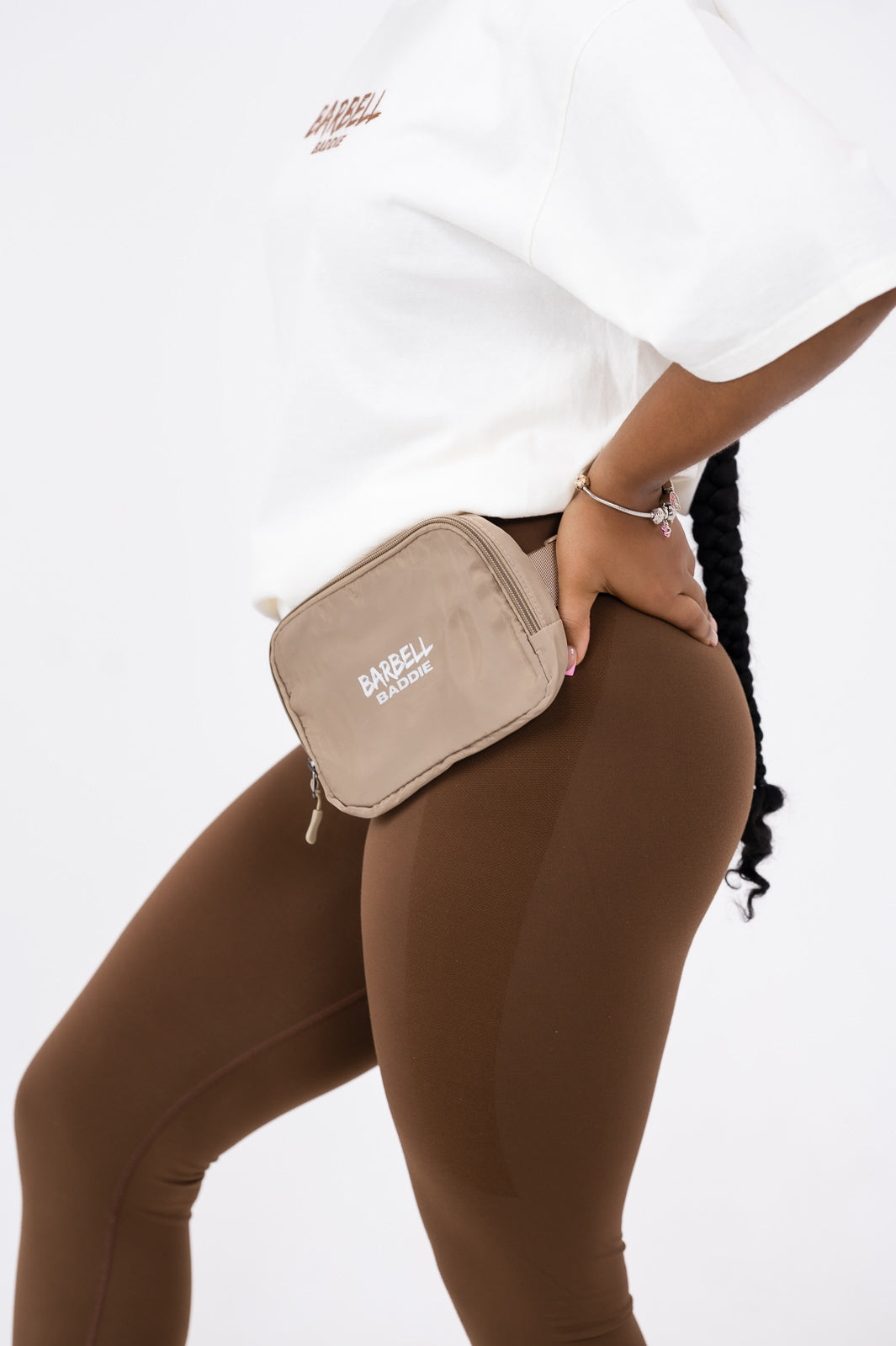 Introducing the Barbell Baddie Fanny Pack — a sleek, sand-colored accessory featuring the iconic white barbell logo. Designed for versatility, wear it across the body or around your waist for hands-free convenience. Perfectly sized to carry your lip gloss, cell phone, and essentials while you crush your workout or run errands in style.